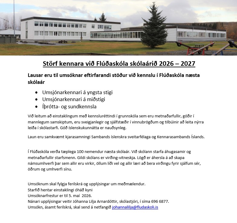 Laus störf kennara við Flúðaskóla 2026-2027